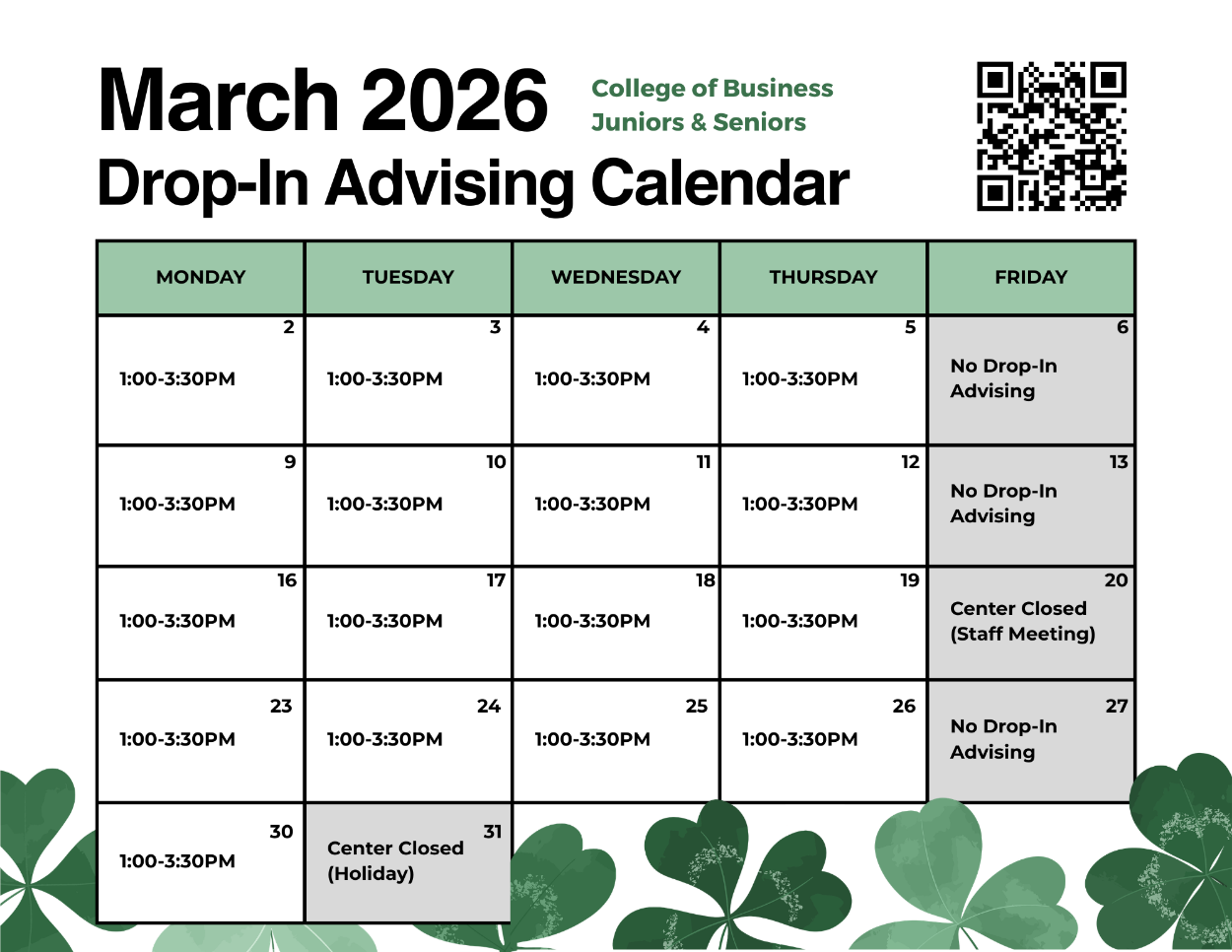 - We do not have drop-in advising on Fridays.